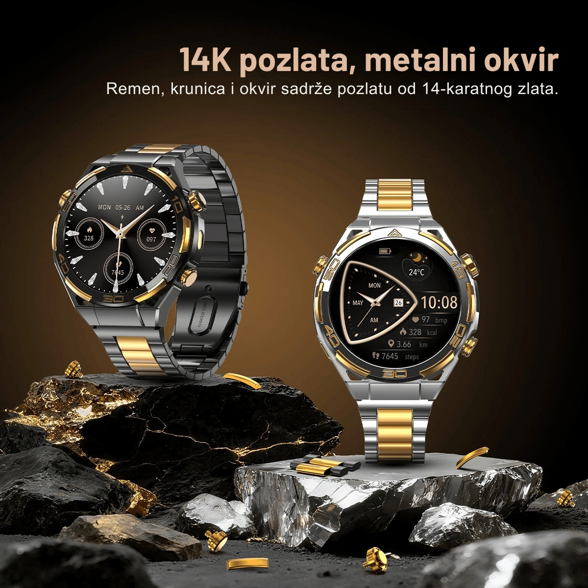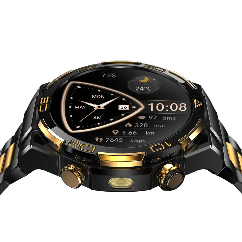 W90M Pro donosi profinjeni metalni okvir, precizno obrađene detalje i ugodno zakrivljen zaslon koji se savršeno stapa s linijama zapešća. Svojim modernim i robusnim dizajnom ovaj pametni sat izgleda jednako dobro u sportskoj odjeći i poslovnom outfitu. Dostupan je u pažljivo odabranim bojama koje dodatno naglašavaju njegov luksuzni izgled.